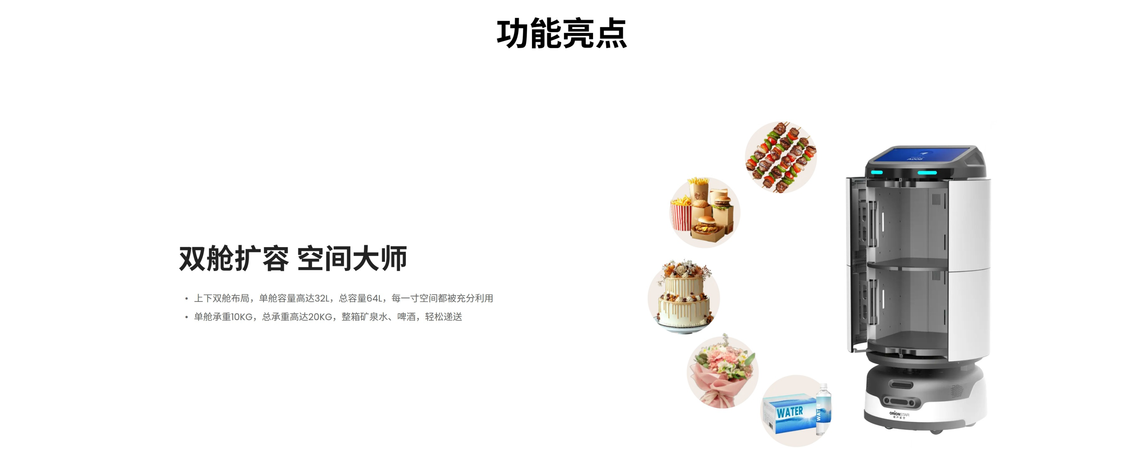 双舱扩容,空间大师。 智能避障,安全保障。 外卖智连,扫码秒送。 窄道通过,畅行无阻。 极速快充,续航先锋。 云端智控,一键管理。