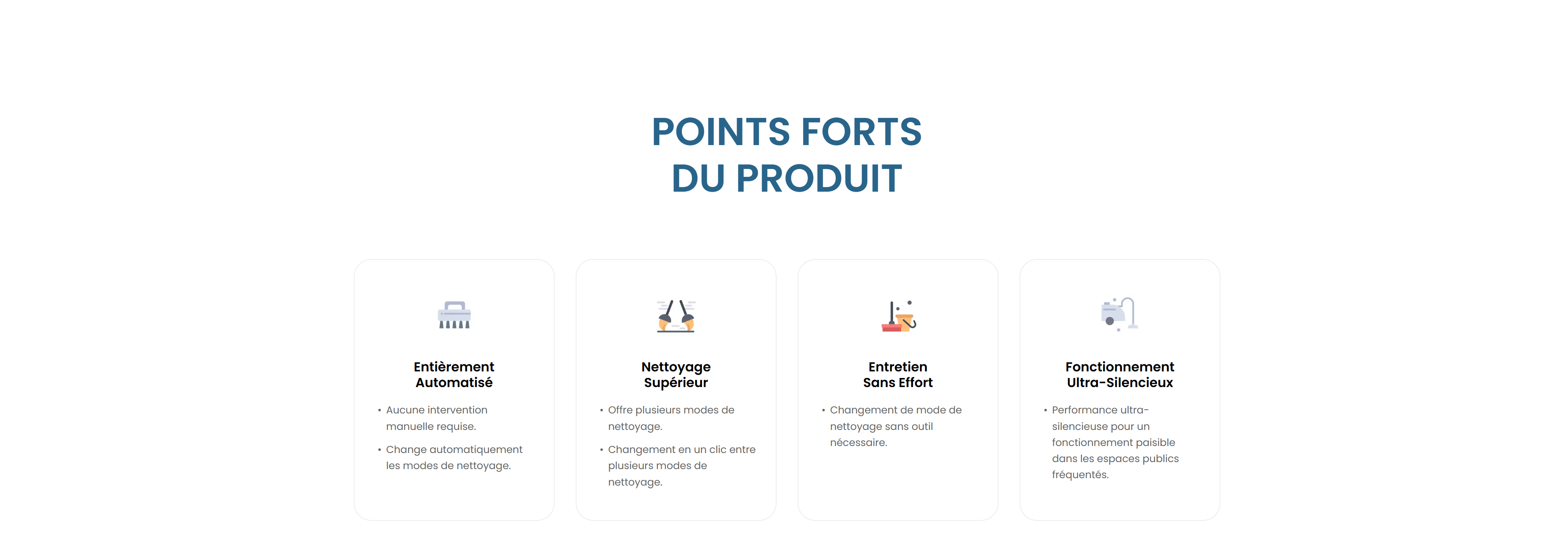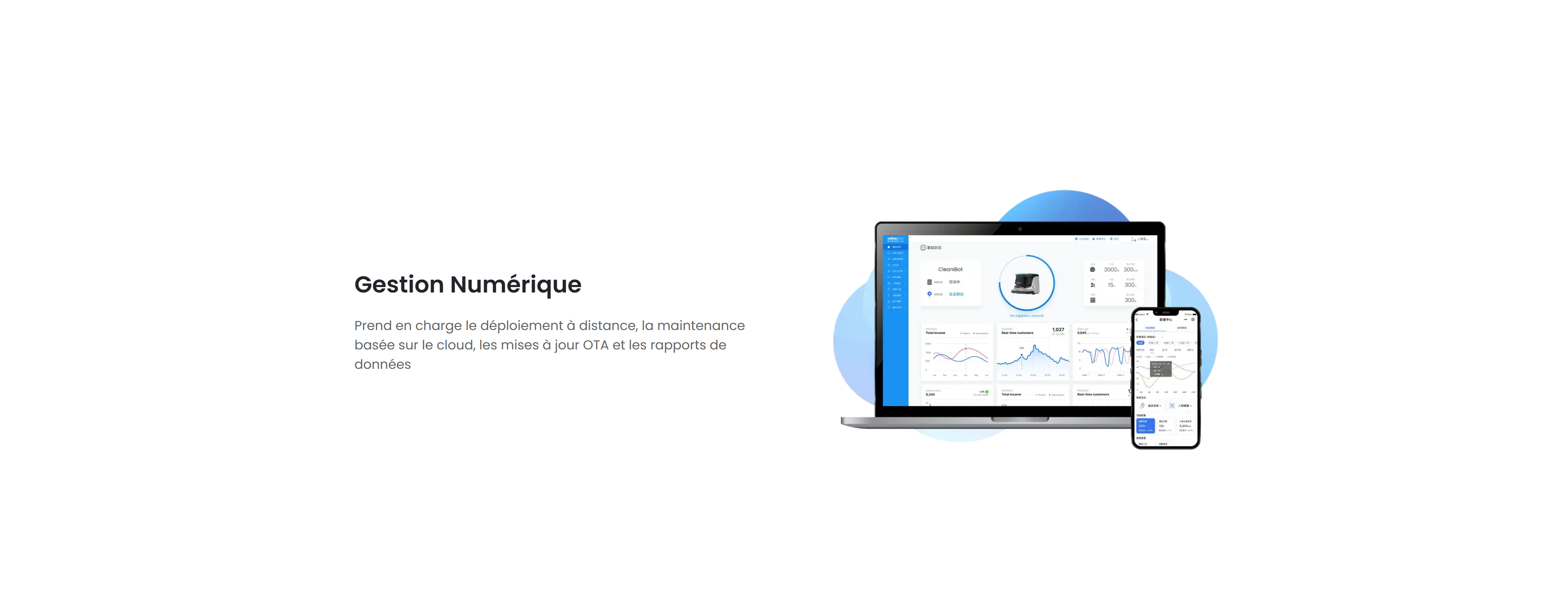 Une fois programmé, CleaniBot gère toutes les tâches de nettoyage de manière autonome. Il change même de mode de nettoyage intelligemment en fonction des paramètres de zone ; aucune intervention manuelle n'est requise.
