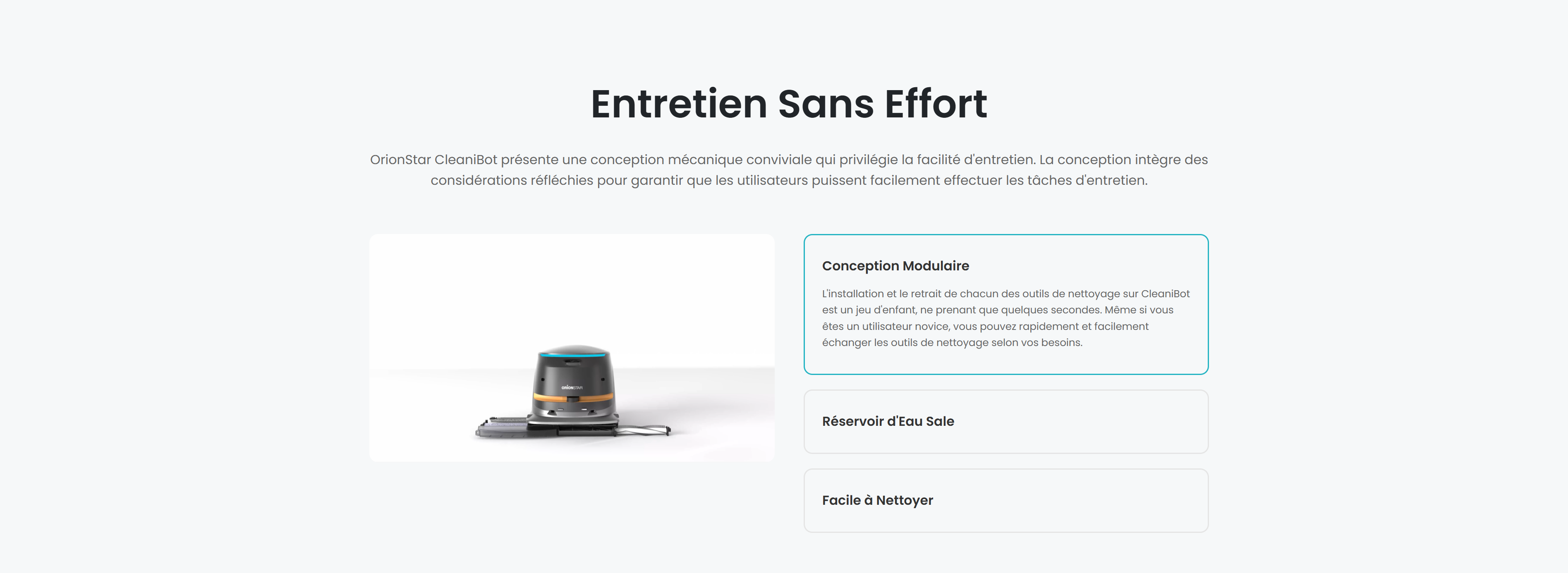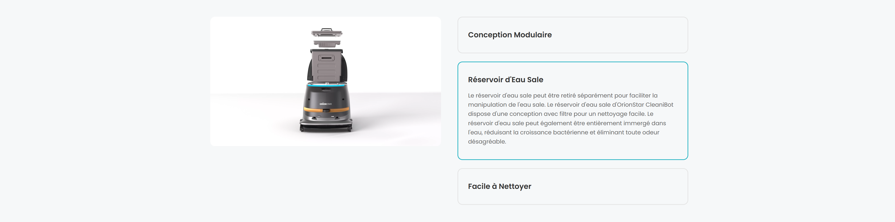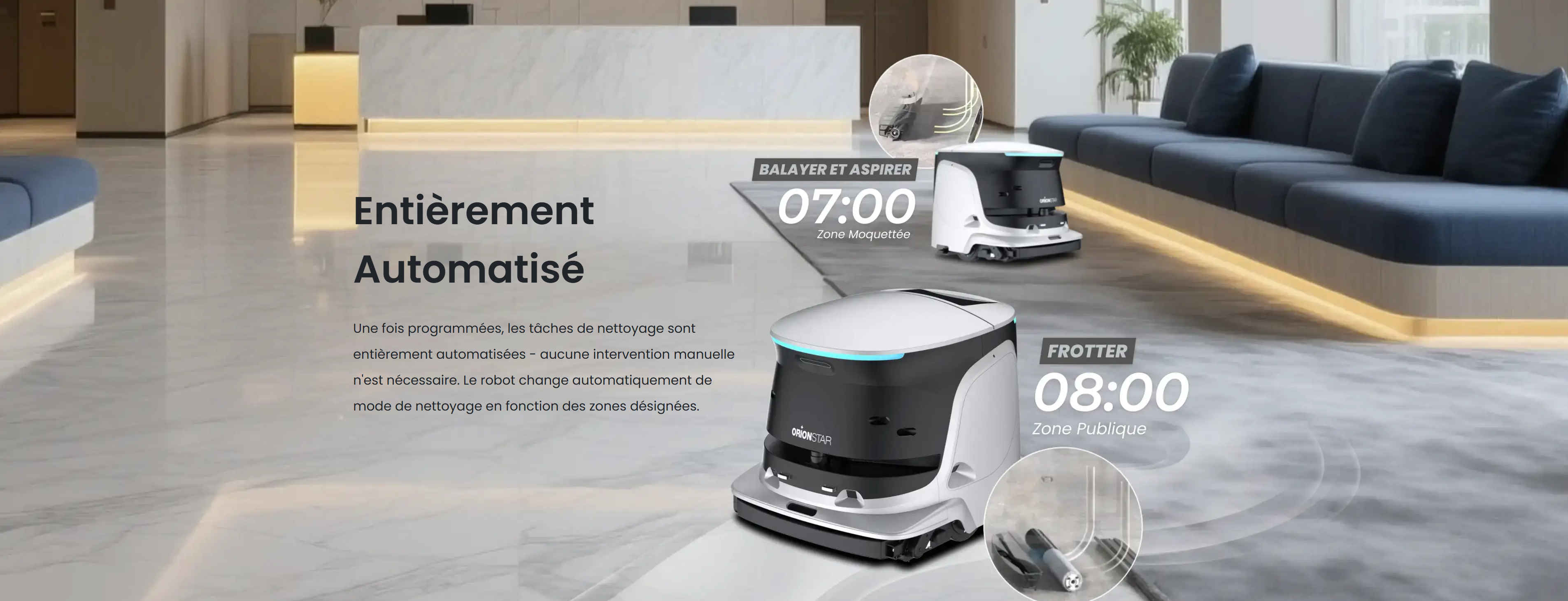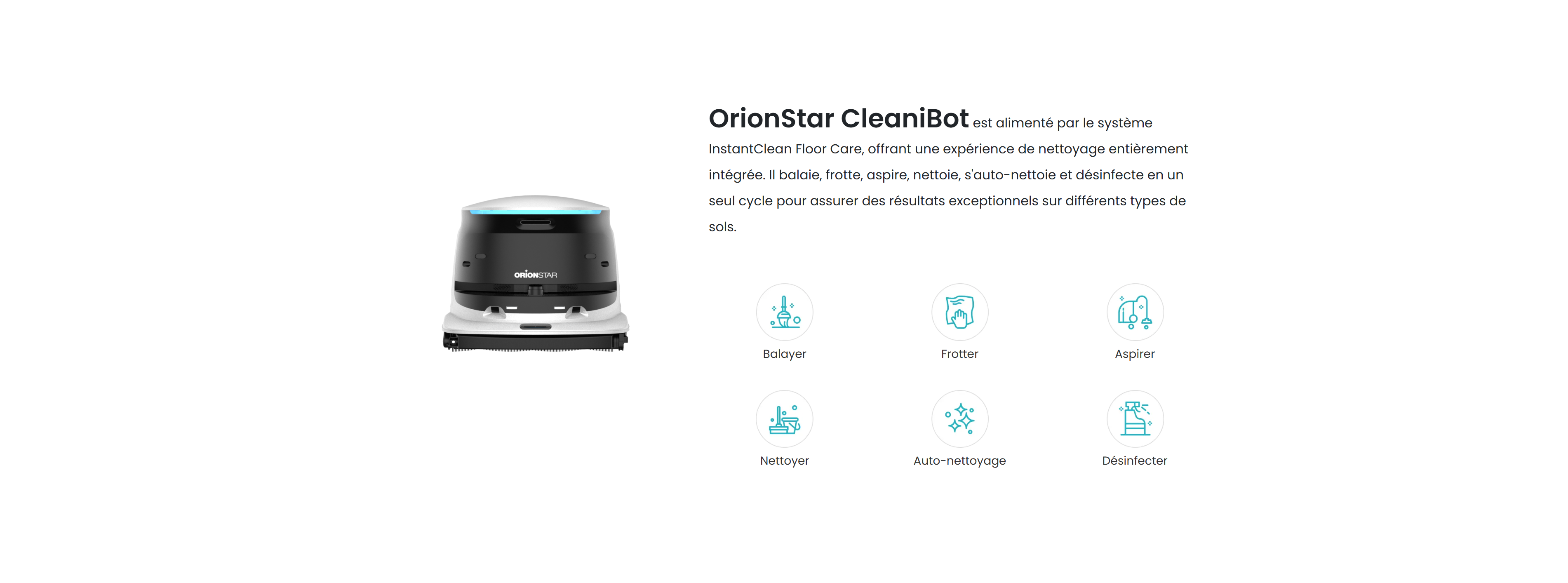 OrionStar CleaniBot vous offre une méthode de nettoyage plus intelligente, plus silencieuse et plus simple. Il garantit des résultats constants avec un minimum d'intervention du personnel et sans tracas.