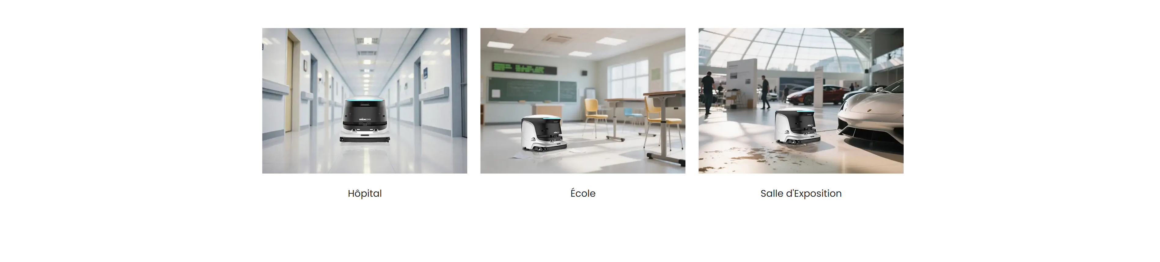 Grâce à ses multiples modes hautes performances, CleaniBot s'adapte sans effort à différents types de sols. Il élimine même les saletés les plus tenaces avec une efficacité de récupération d'eau de 97 %, garantissant des sols secs et impeccables, évitant ainsi les glissades et les contaminations secondaires.