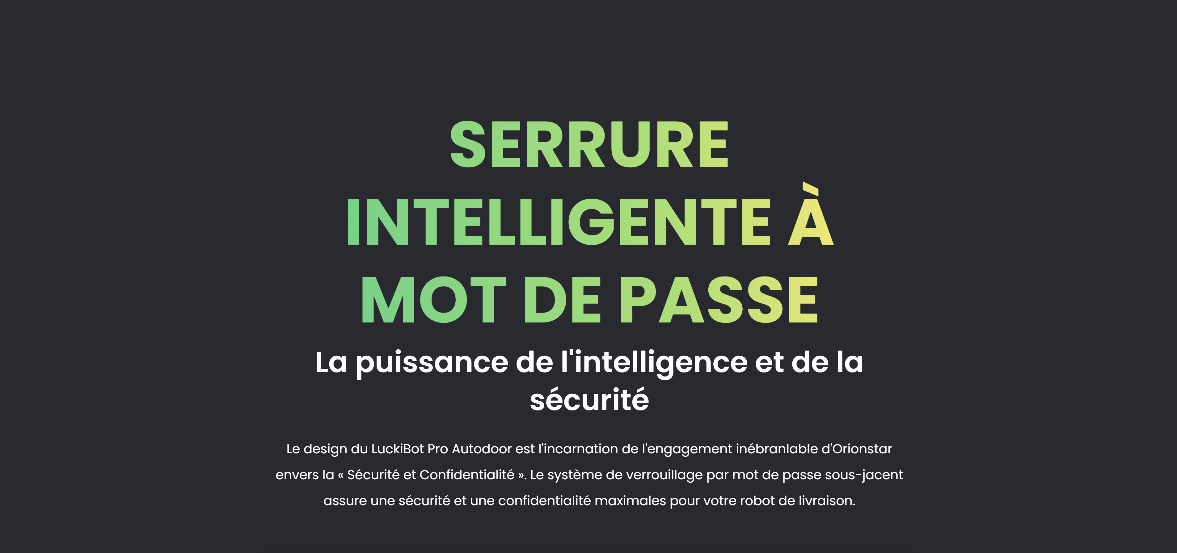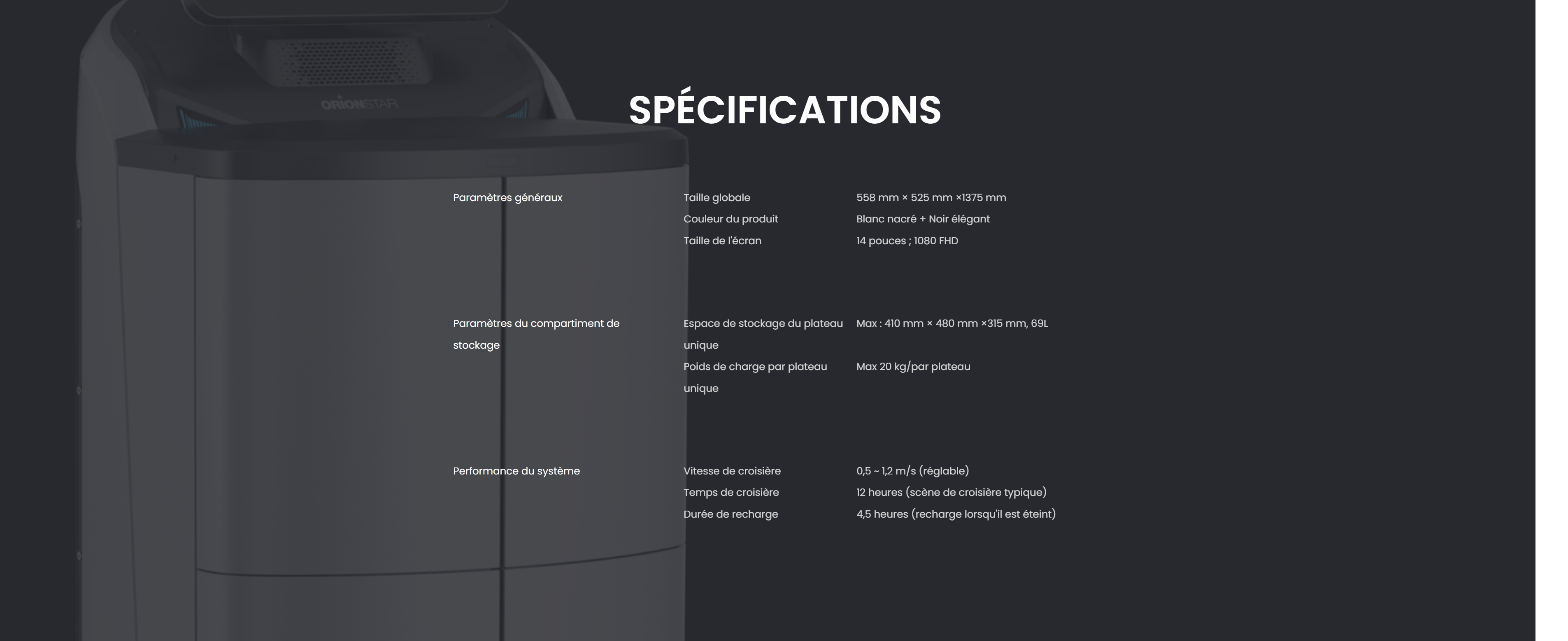 Fonctions : Livraison scellée, affichage publicitaire, guidage vocal.