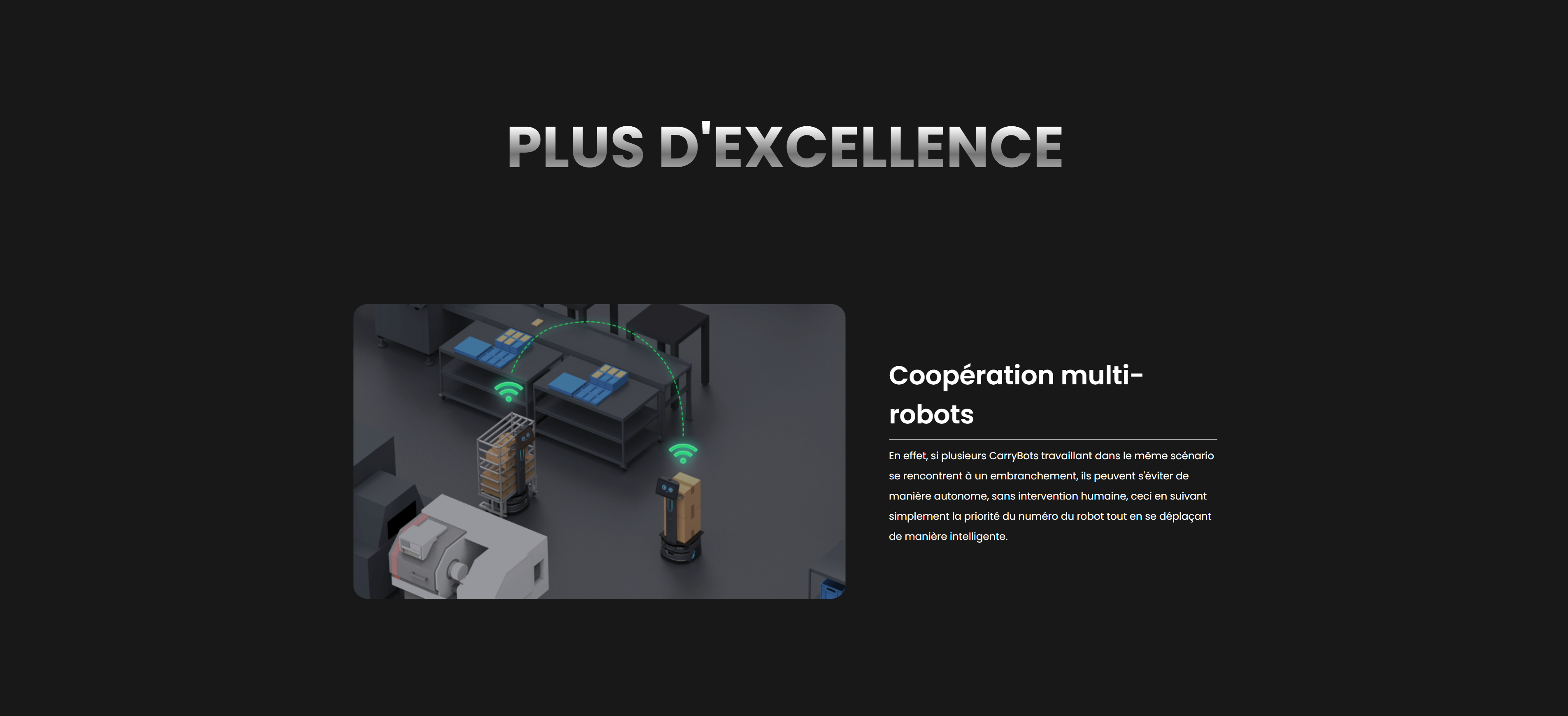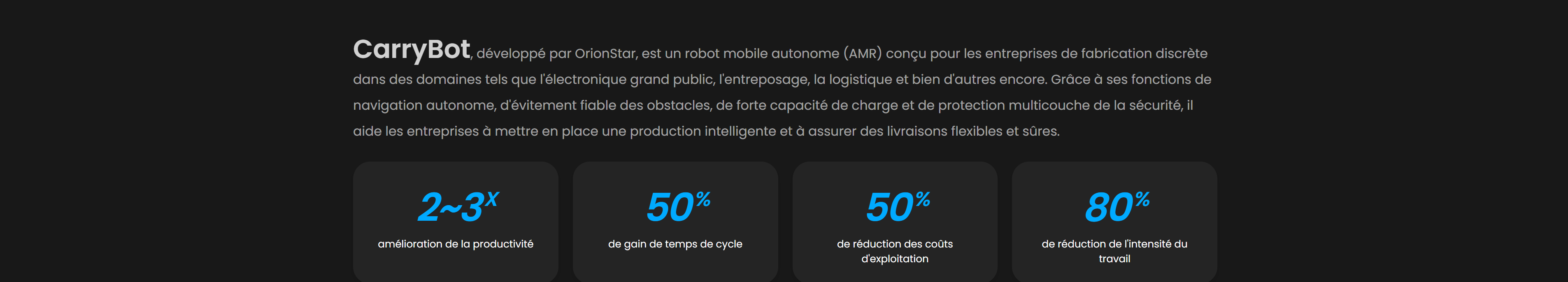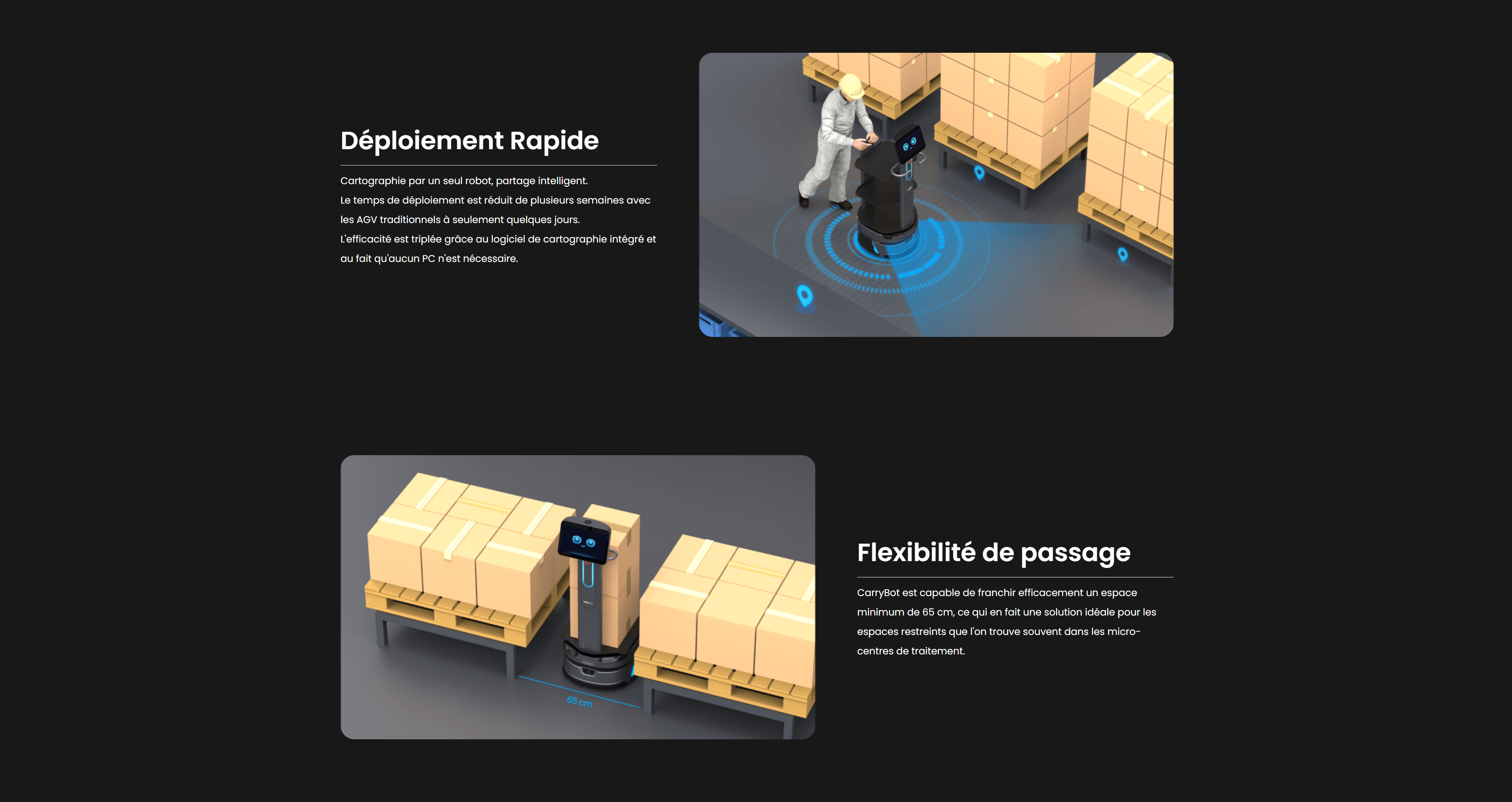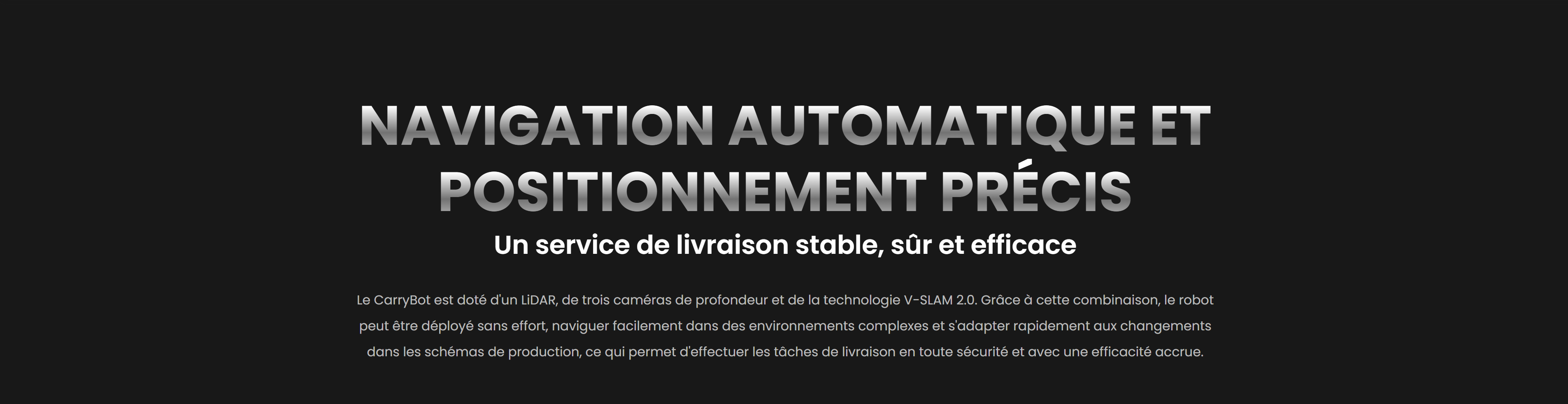 Caractéristiques : Charge utile de 100 à 150 kg, puce Qualcomm 845, évitement d’obstacles 3D à 240 degrés